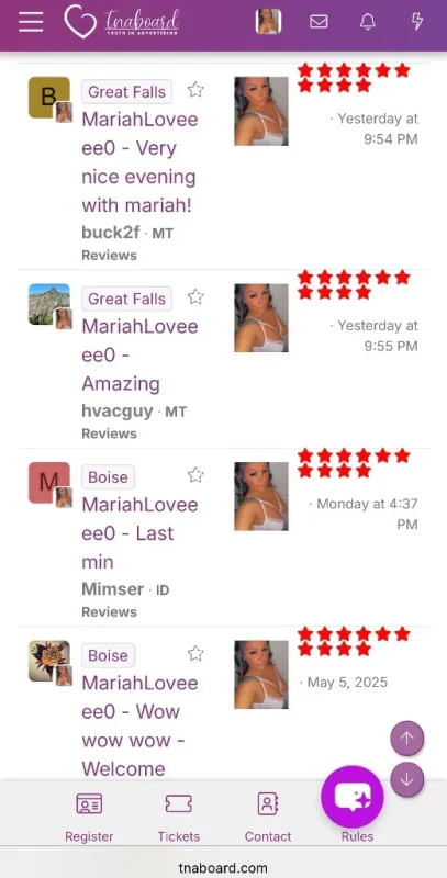 Hello Baby, Come relax & unwind as we enjoy each others company as well as getting to know your deepest fantasies and desires. Just let me ease your mind in a way that will blow you away! TNA Board 5 โญProvider (Mariahloveeee0) Adequate Hygiene Is A MUST & No Exceptions Clean Gentleman ONLY! ๐ซ NO BB ๐ซ NO GFE Available For Incall/Outcall. Dinner/social dates, Fetish sessions, Duo (Multiple Girls) sessions, bachelor parties, exclusive travel, OVERNIGHT stays. Book your appointment via text/call now & Let me fulfill all your fantasy's & deepest desires. My photos are 100% real. ๐ธ Xoxo, Mariah Love